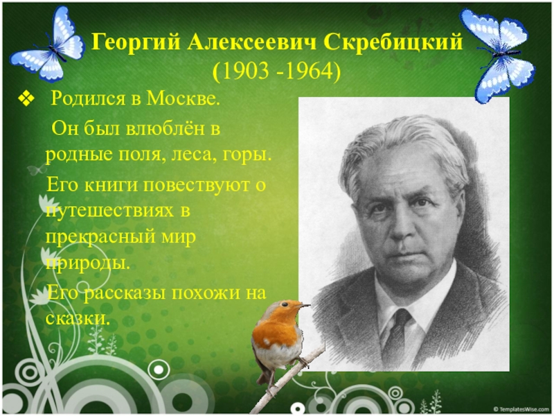 Георгий Алексеевич Скребицкий  (1903 -1964)  Родился в Москве.      Он