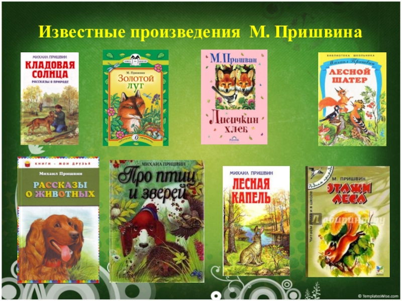 Слайд 8 Известные произведения М. Пришвина