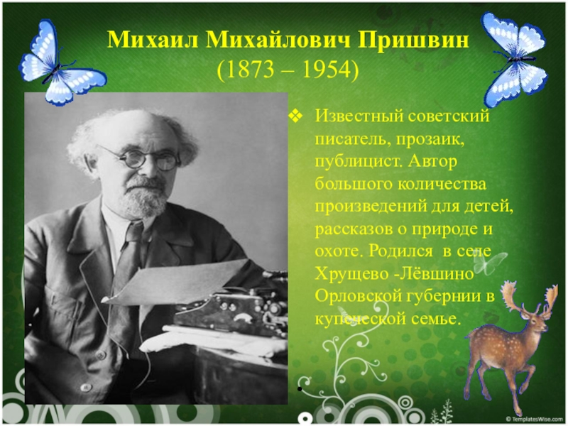 Михаил Михайлович Пришвин (1873 – 1954)     Известный советский писатель, прозаик,