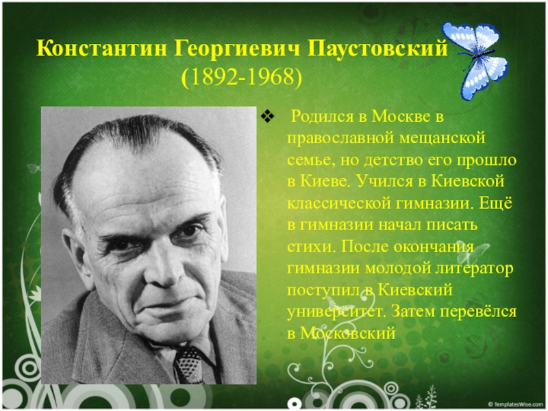 Константин Георгиевич Паустовский  (1892-1968)  Родился в Москве в православной мещанской семье, но детство