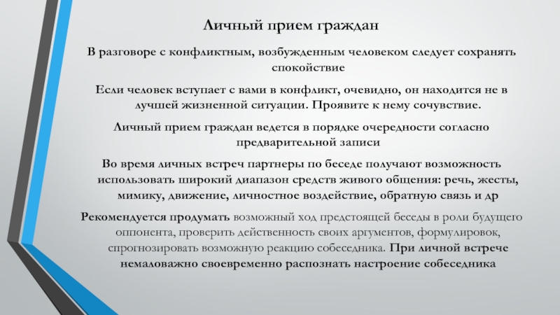 Личный прием граждан ведется в порядке очередности согласно предварительной записи