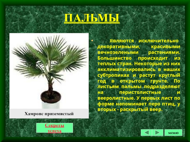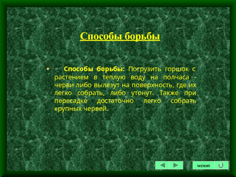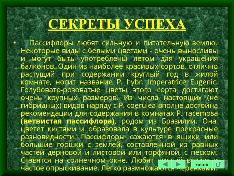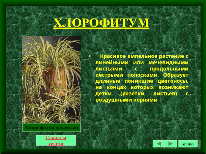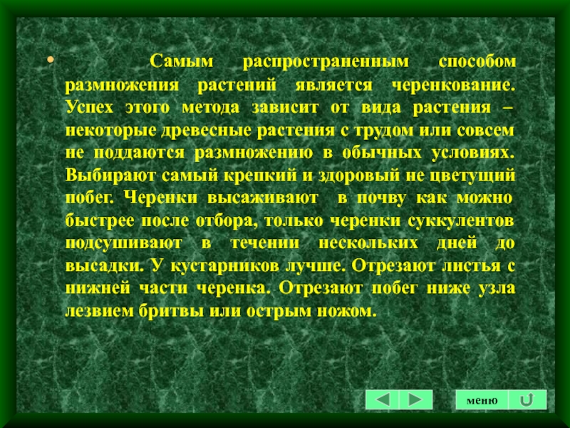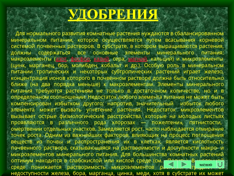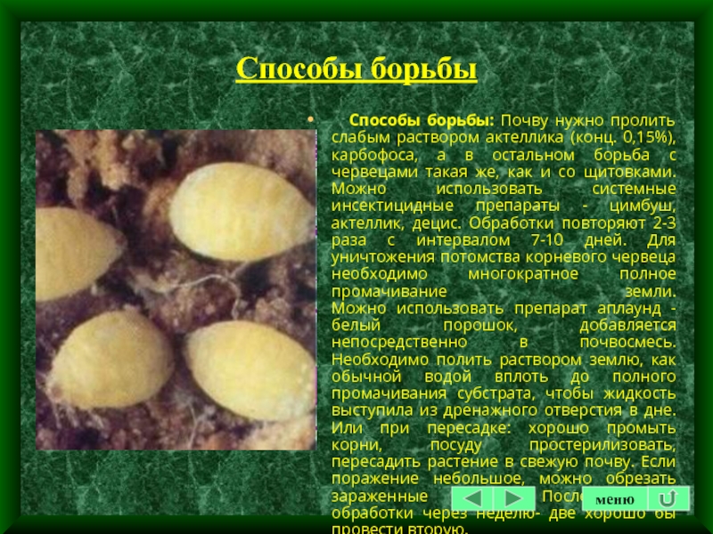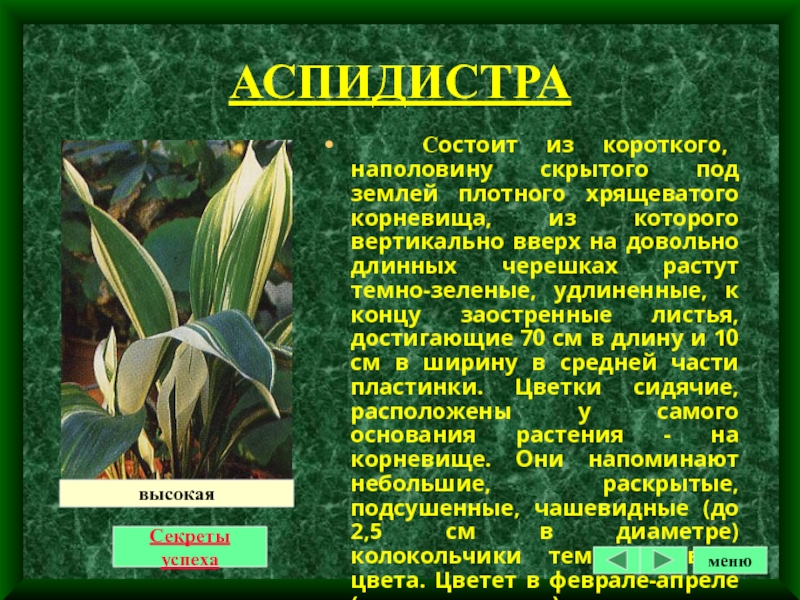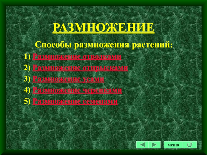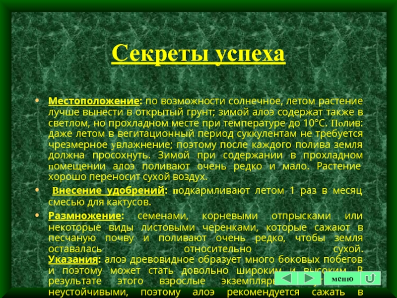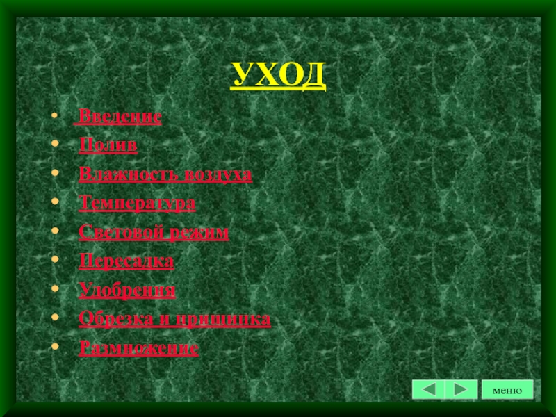Размножение: Самый простой способ - делением растения (если оно образует отростки) на 2-3 части ранней весной при пересадке. Некоторые папоротники дают начало новым растениям на концах наземных укореняющихся побегов-столонов (например, нефролепис возвышенный) или на концах листьев (костенец луковиценосный). Возможный, но более трудный способ - проращивание спор, образующихся в спорангиях на нижней части взрослой листовой пластинки.