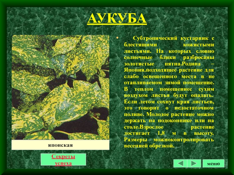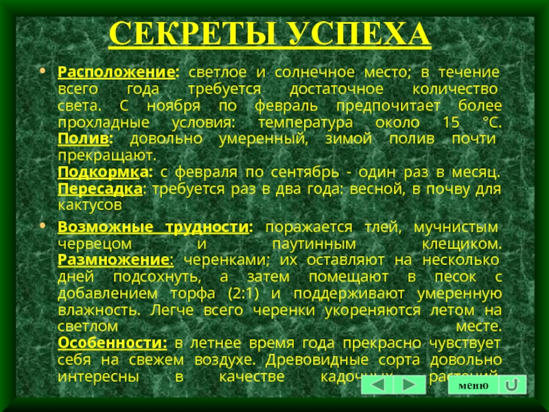 Полив: Земляной ком никогда не должен пересыхать, но в то же время пере увлажнение грозит загниванием корней. Зимой полив ограничивают.