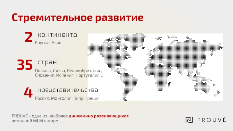 Стремительное развитиеPROUVÉ - одна из наиболее динамично развивающихся компаний MLM в мире.