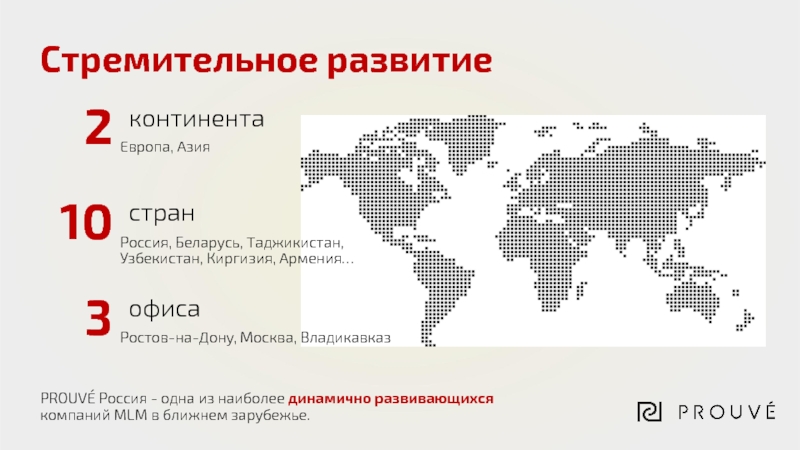 Стремительное развитиеPROUVÉ Россия - одна из наиболее динамично развивающихся компаний MLM в ближнем зарубежье.