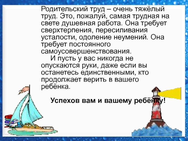 Слайд 8Родительский труд – очень тяжёлый труд. Это, пожалуй, самая трудная