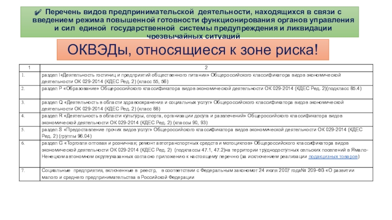 Для ОКВЭД, находящихся в зоне риска (слайд 3)