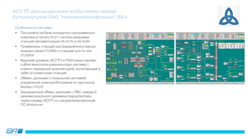 АСУ ТП цеха выделения изобутилена завода бутилкаучуков ОАО "Нижнекамскнефтехим“, БК-4
