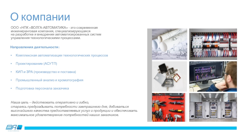 стараясь предугадывать потребности завтрашнего дня, добиваться высочайшего качества предоставляемых услуг и продукции и обеспечивать максимальное удовлетворение потребностей наших заказчиков.