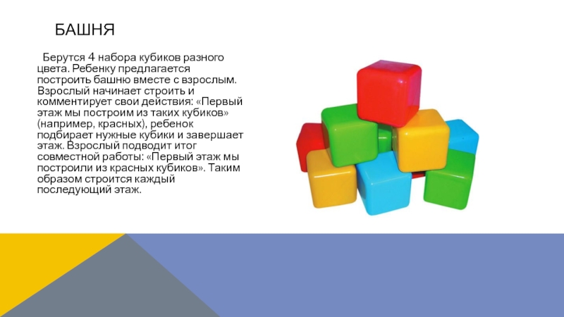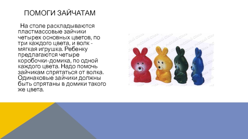Слайд 72 Берут несколько цветных картинок с изображением знакомых ребенку предметов (мяч,
