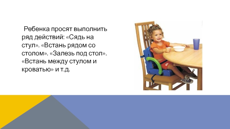 Слайд 69 Цель: учить ребенка ориентироваться в пространстве комнаты, квартиры, последовательно ее