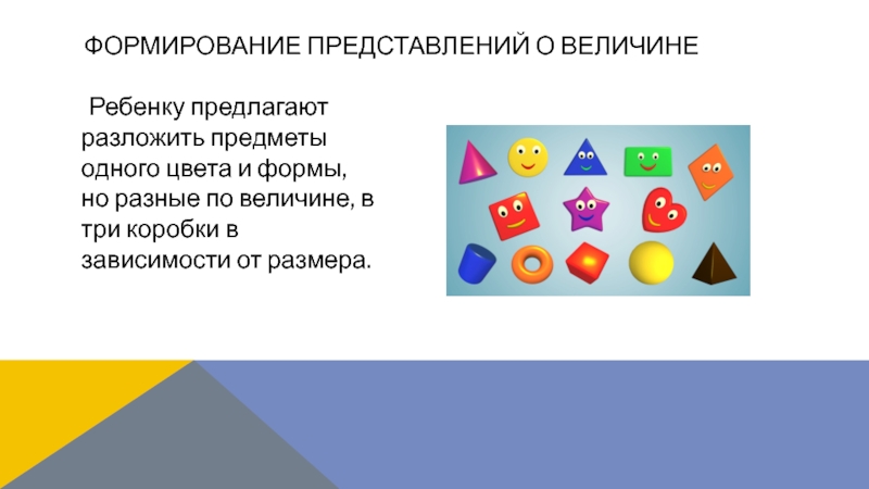 не видно. Для упражнения необходимы игрушки разных размеров. Игрушки «грают в прятки: меньшую игрушку прячем за большую, обращая внимание ребенка на то, что меньшая игрушка спряталась за большую. Она меньше, поэтому ее не видно, большая заслоняет меньшую, стоит перед ней.