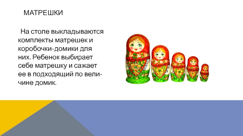 «Матрешкам негде жить. Дети строят для них домики, они входят и смотрят в окна на детей».