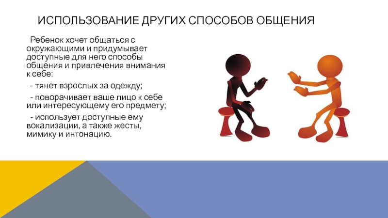 Слайд 17 Ребенок хочет общаться с окружающими и придумывает доступные для него