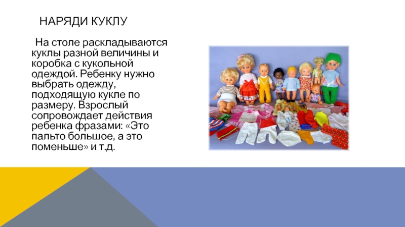 Слайд 74 С помощью сюрпризного момента предъявляется знакомая кукла. Она хочет спать,