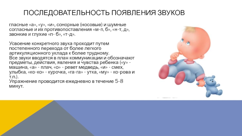 участия голосового, артикуляционного и дыхательного отделов речевого аппарата. Время появления