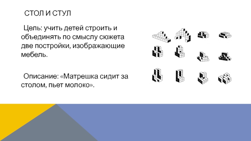 Слайд 67 Цель: научить строить из двух вертикально стоящих и двух лежащих