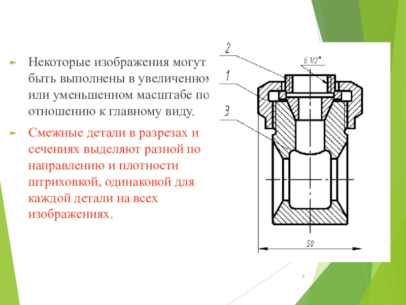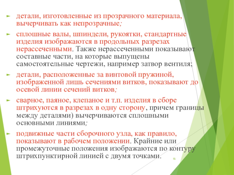 Слайд 16детали, изготовленные из прозрачного материала, вычерчивать как непрозрачные;
