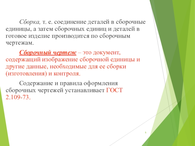 Слайд 6Сборка, т. е. соединение деталей в сборочные единицы, а затем