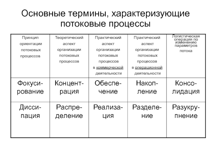 Слайд 73Основные термины, характеризующие потоковые процессы