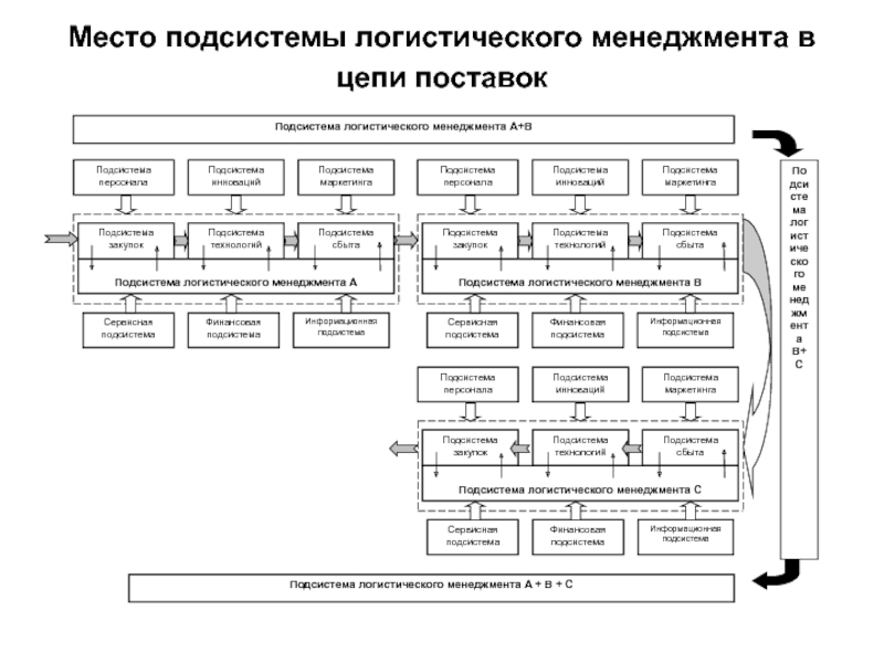 Слайд 64Место подсистемы логистического менеджмента в деятельности предприятия как целого