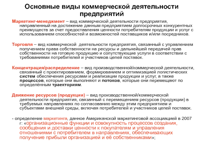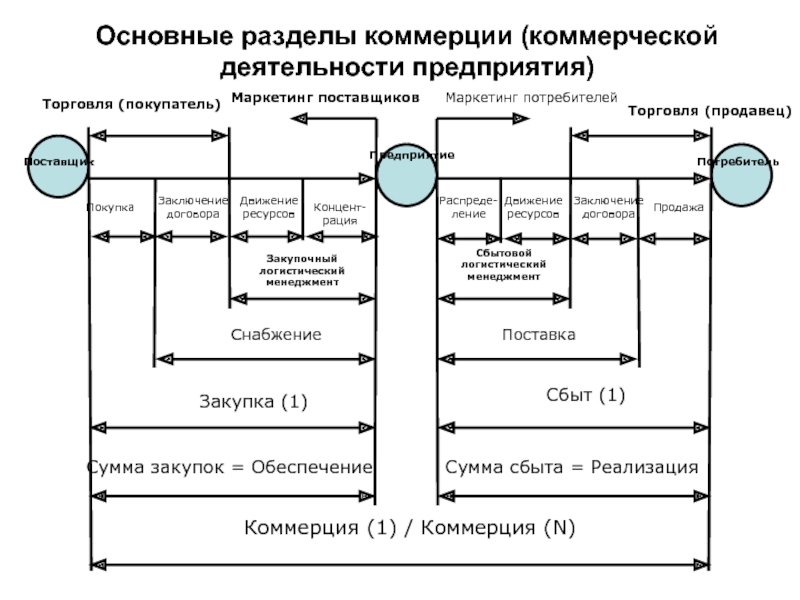 Слайд 62Основные разделы коммерции (коммерческой деятельности предприятия)