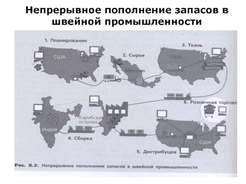 Слайд 8Непрерывное пополнение запасов в швейной промышленности