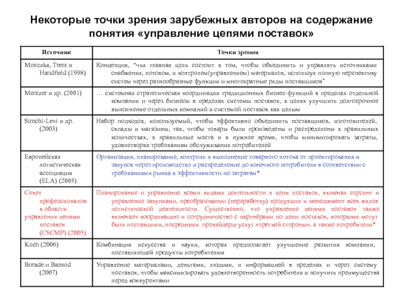 Слайд 19Некоторые точки зрения зарубежных авторов на содержание понятия «управление цепями