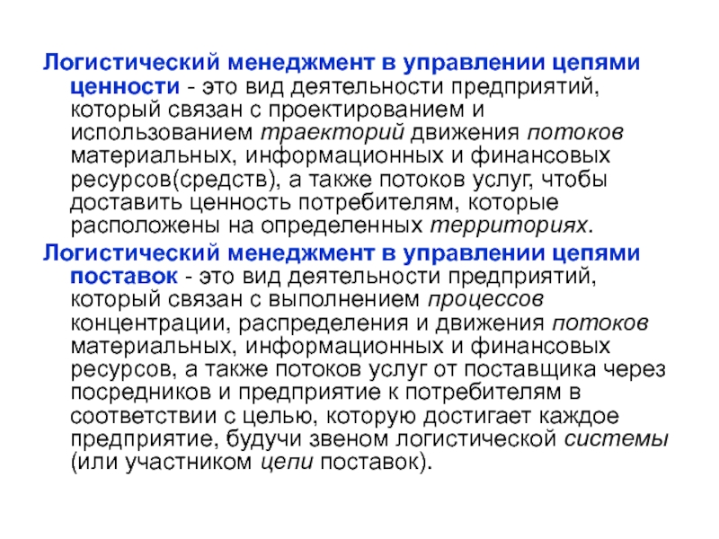 материальных, информационных, финансовых ресурсов, а также потоками услуг.