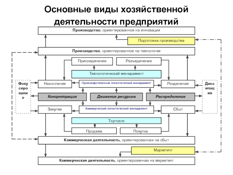 - хозяйственная деятельность: управление материальными, информационными, финансовыми и сервисными потоками, а также потоками услуг