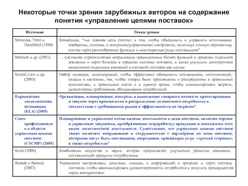 Слайд 18Некоторые точки зрения зарубежных авторов на содержание понятия «управление цепями