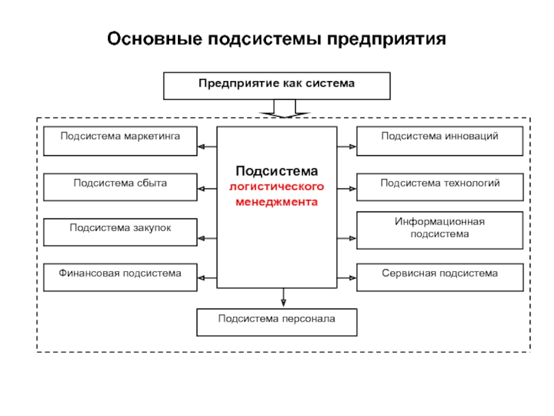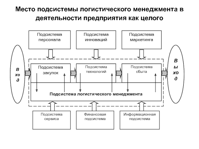Слайд 64Место подсистемы логистического менеджмента в деятельности предприятия как целого