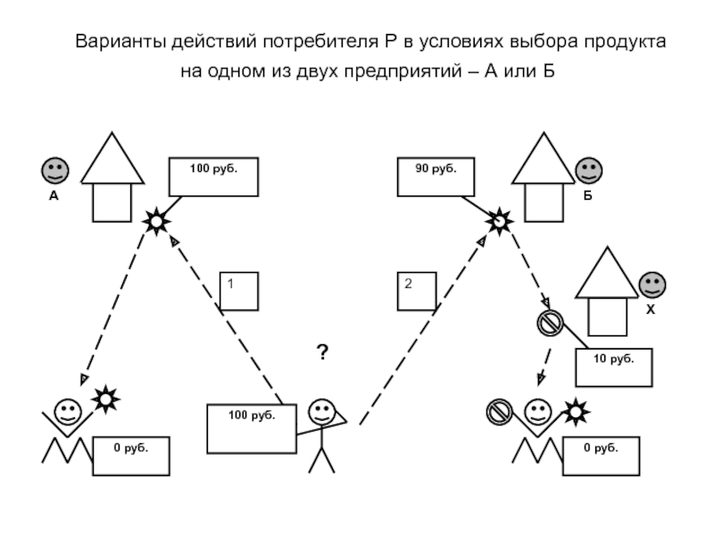 Слайд 4Варианты действий потребителя Р в условиях выбора продукта на одном