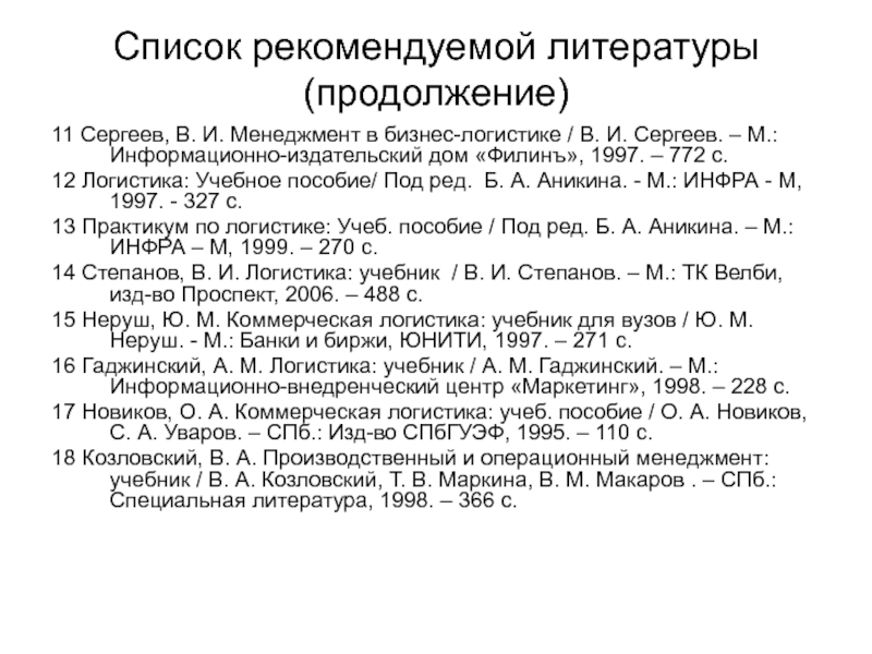 11 Сергеев, В. И. Менеджмент в бизнес-логистике