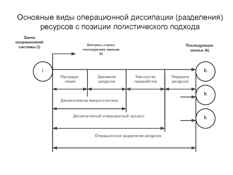 Слайд 52Основные виды операционной диссипации (разделения) ресурсов с позиции логистического подхода