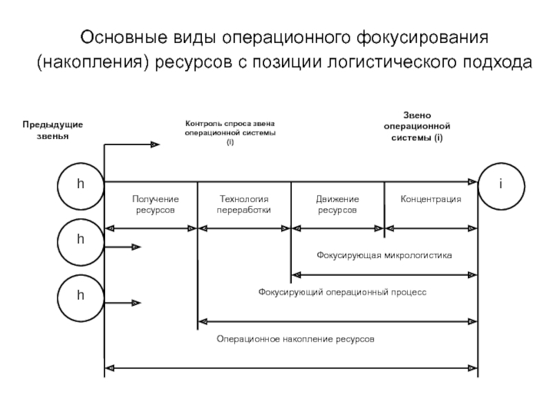 Слайд 51Основные виды операционного фокусирования (накопления) ресурсов с позиции логистического подхода