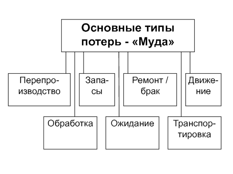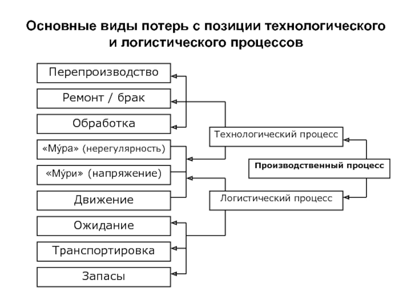 Слайд 14Основные виды потерь с позиции технологического и логистического процессов