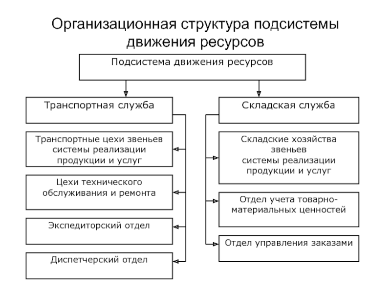 Слайд 81Организационная структура подсистемы движения ресурсов