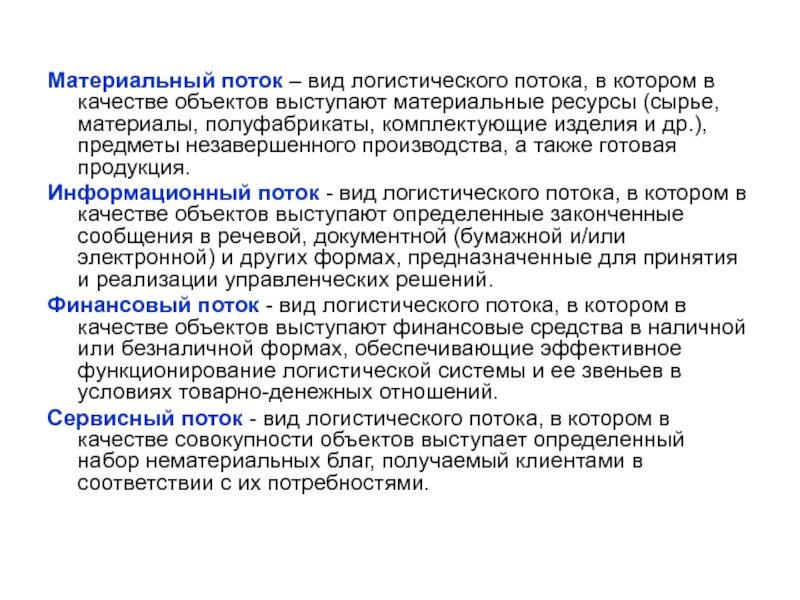 Слайд 69Материальный поток – вид логистического потока, в котором в качестве