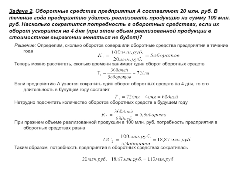 Слайд 6Задача 2. Оборотные средства предприятия А составляют 20 млн. руб.