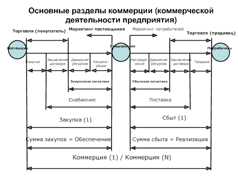 Слайд 62Основные разделы коммерции (коммерческой деятельности предприятия)