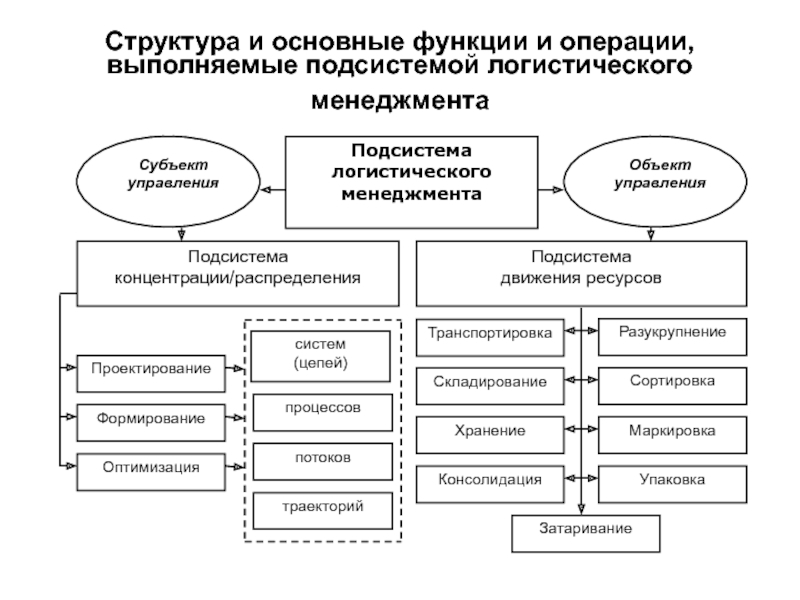 Слайд 66Структура и основные функции и операции, выполняемые подсистемой логистического менеджмента