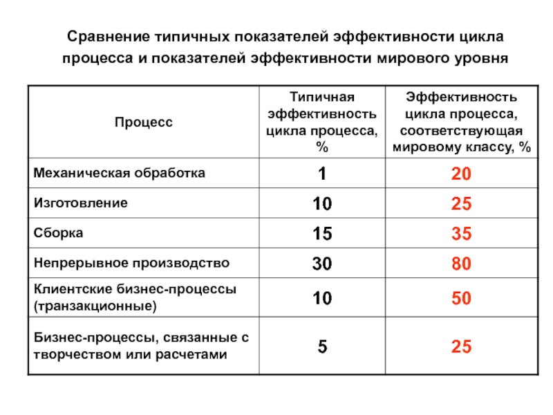 Слайд 12Сравнение типичных показателей эффективности цикла процесса и показателей эффективности мирового