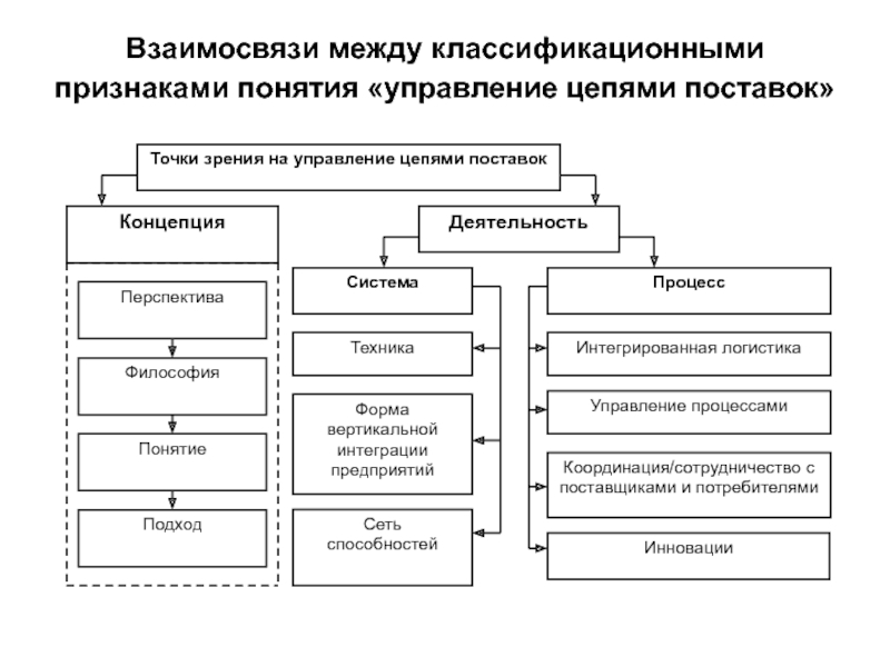 Слайд 21Взаимосвязи между классификационными признаками понятия «управление цепями поставок»