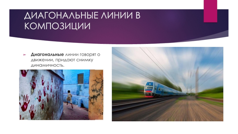 Слайд 11ДИАГОНАЛЬНЫЕ ЛИНИИ В КОМПОЗИЦИИ