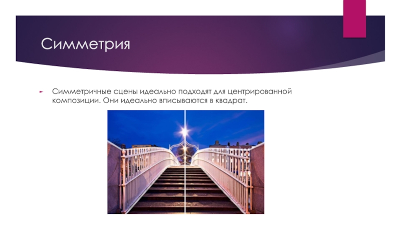 Симметричные сцены идеально подходят для центрированной композиции. Они идеально