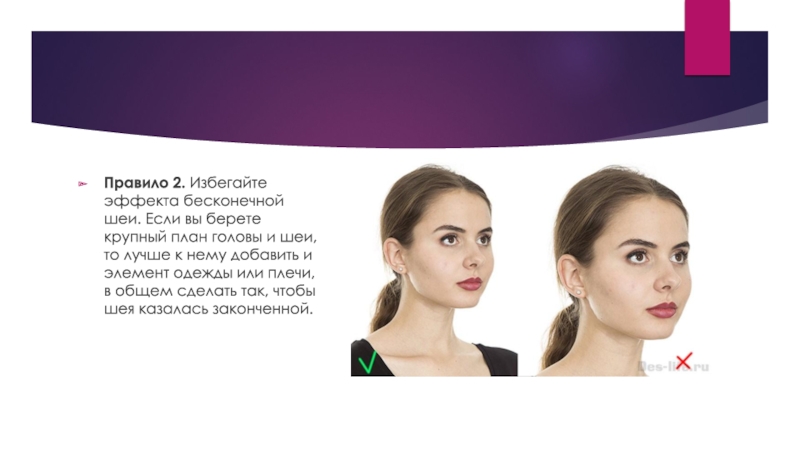 Слайд 42Правило 2. Избегайте эффекта бесконечной шеи. Если вы берете крупный план