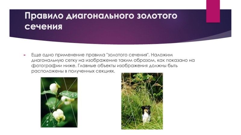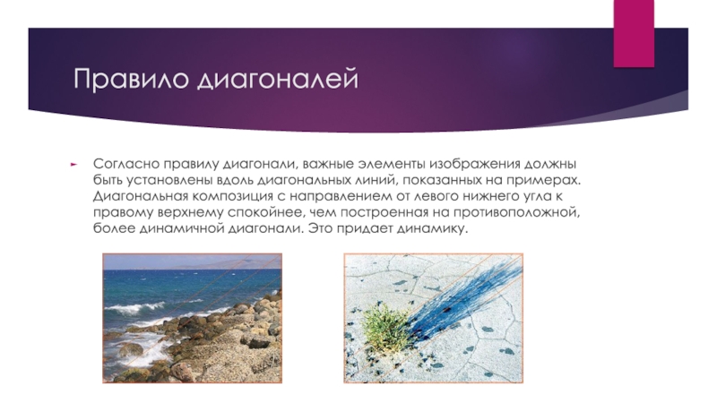 Согласно правилу диагонали, важные элементы изображения должны быть установлены