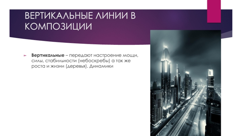 Слайд 9ВЕРТИКАЛЬНЫЕ ЛИНИИ В КОМПОЗИЦИИ