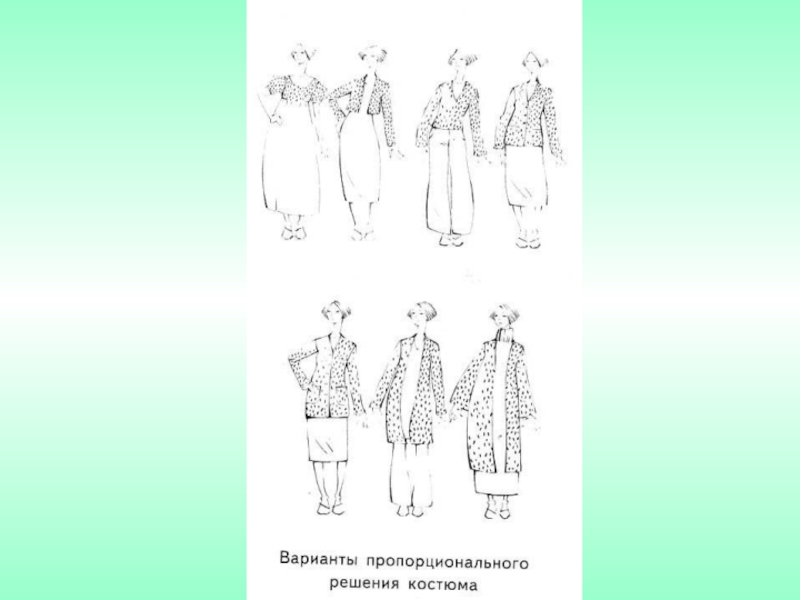 Слайд 27Пропорции определяются интуитивно или задаются тенденциями моды. Каждое модное направление